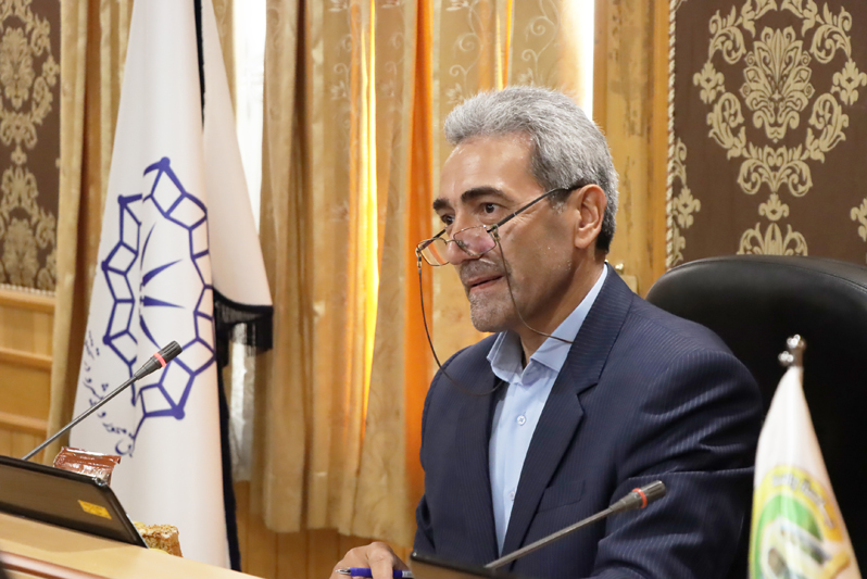 Dr. Azad Khanzadi, Vice Dean for Educational Affairs and Graduate Studies at the Faculty of Social Sciences, Economics, and Accounting at Razi University, presented a report on the educational structure and research capabilities of his faculty, emphasizing its scientific and educational strengths.